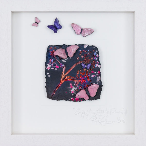 The photo just doesn't capture the full beauty of this piece! The colours and metallics will change throughout the day as the daylight changes! Carrying the very important message of 'Enjoy the Little Things' which some of us forget to do sometimes.
