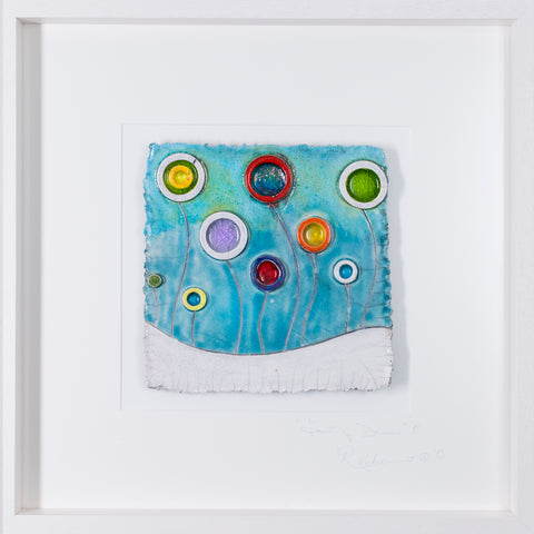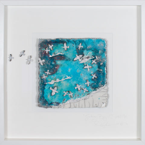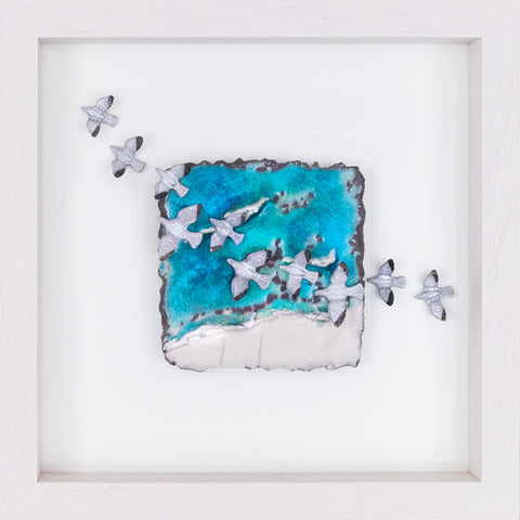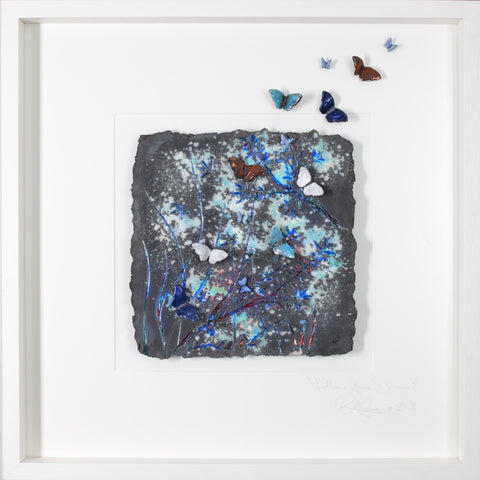 Dreamy and very calming blues, soft turquoise and oil slick metallics on a truly 'PURE' raku fired background! To me this is what raku is all about! Where the smoke penetrates the clay during the firing, to give these wonderful matt slate, greys and soft black finish!