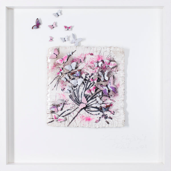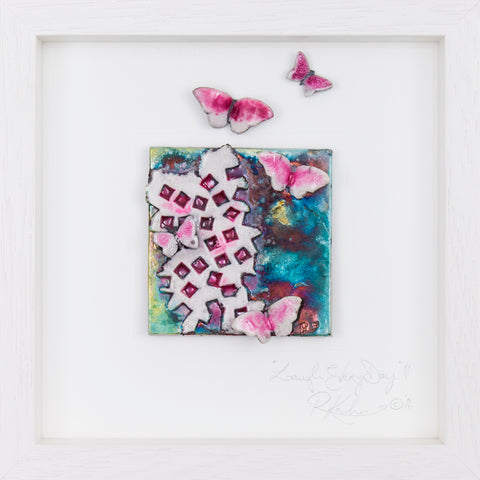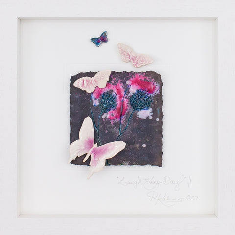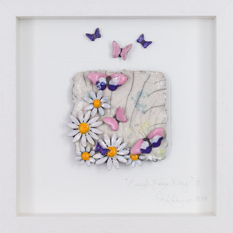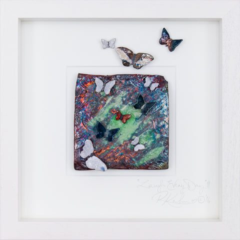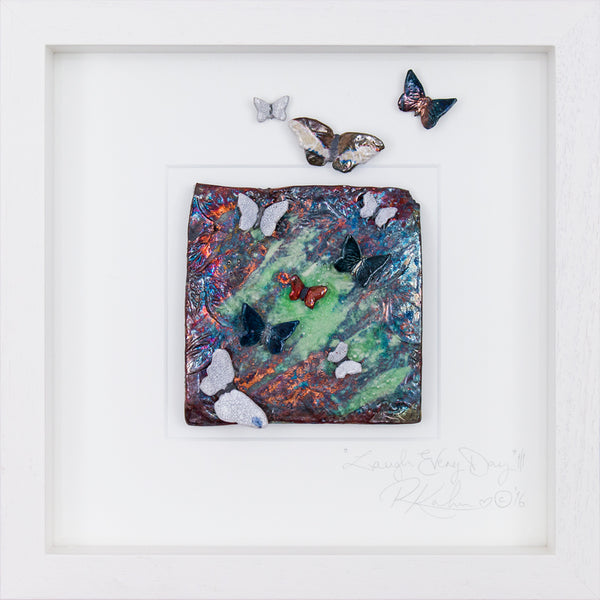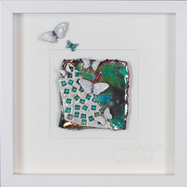 This piece has the most stunning array of pinks and multiple colours in it's oil slick metallics on a truly 'PURE' raku fired background! To me this is what raku is all about! Where the smoke penetrates the clay during the firing, to give these wonderful matt slate, greys and soft black finish! With all of it's colours this piece will very easily work with any colour scheme!