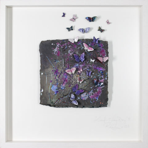 This piece has the most stunning array of purples, lilacs, pink, blues, indigo, violet and oil slick metallics on a truly 'PURE' raku fired background! To me this is what raku is all about! Where the smoke penetrates the clay during the firing, to give these wonderful matt slate, greys and soft black finish!