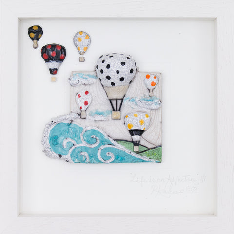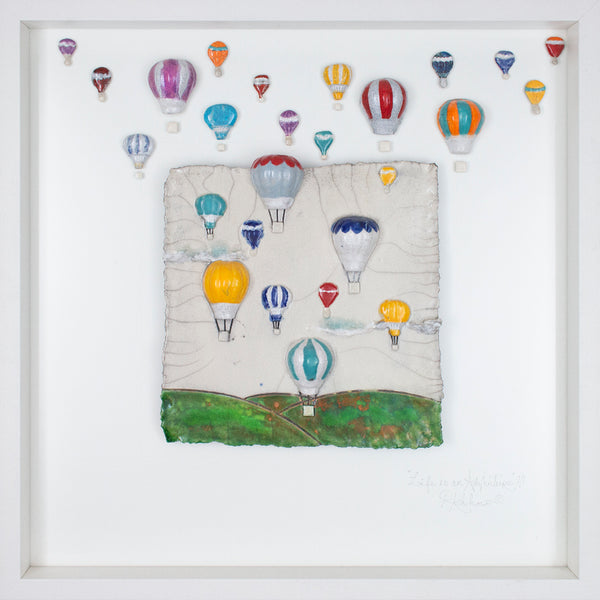 Whimsical hot air balloons, have such a sense of adventure, excitement and freedom! The perfect gift for so many occasions....or just because. This particular piece has the flavour of Thailand!...possibly reminiscent of a trip to there for some...