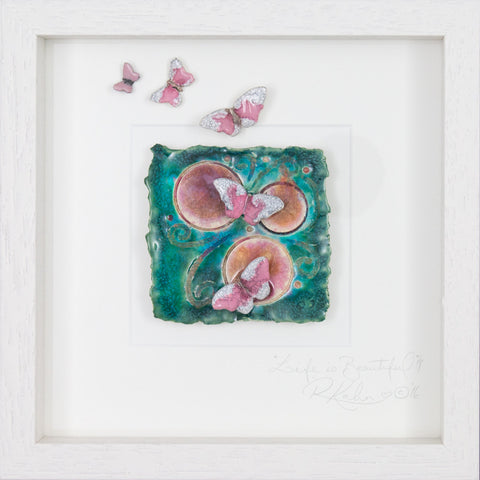 I love the mix of teal, turquoise and soft pinks in this piece, it creates such a calming feeling and carries the pensive message of 'Life is Beautiful', because...well.. it really is, but sometimes we don't take the time to really think about it...