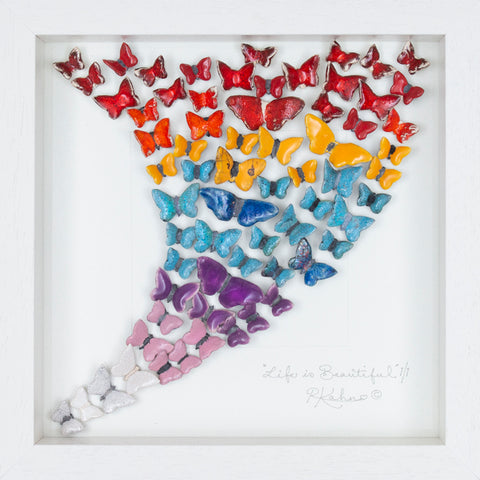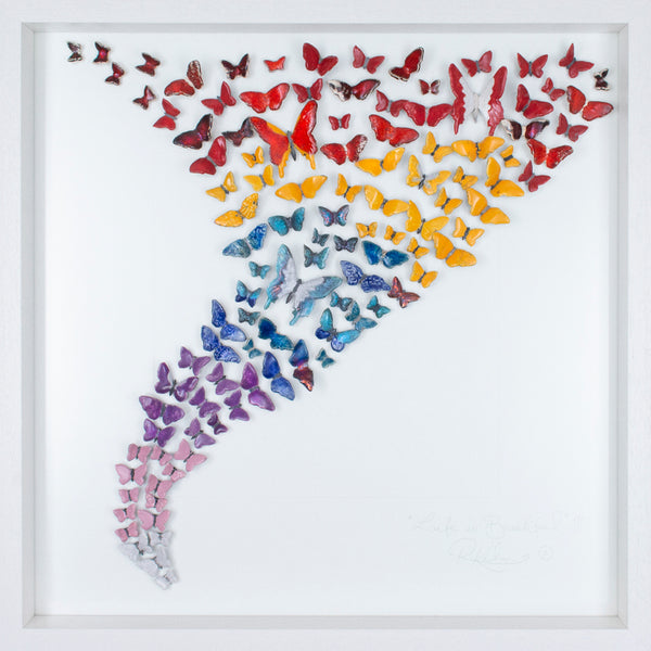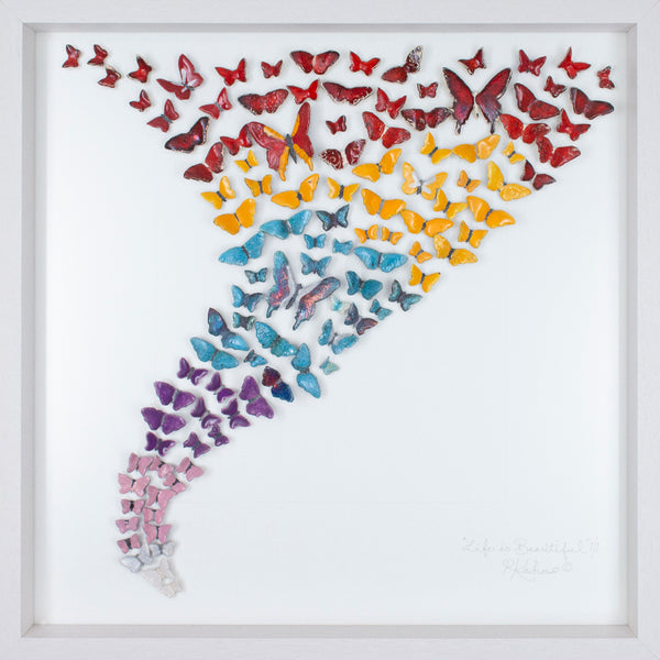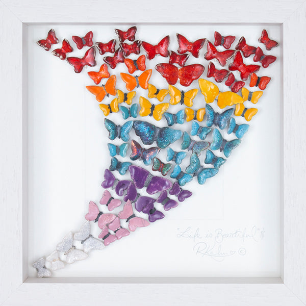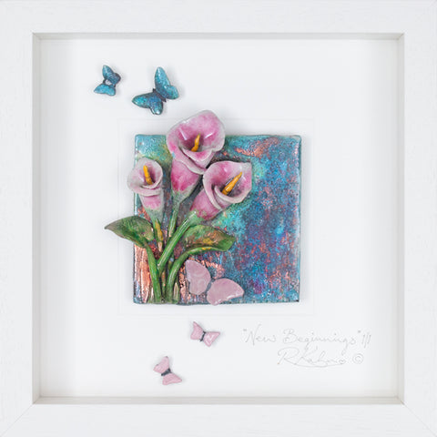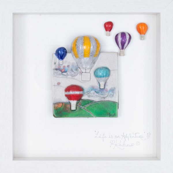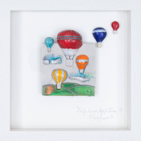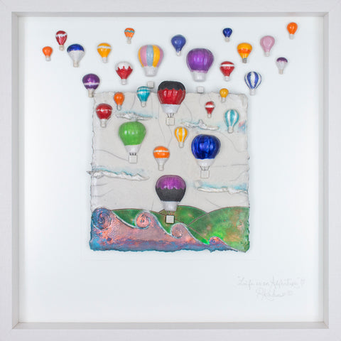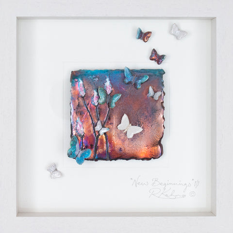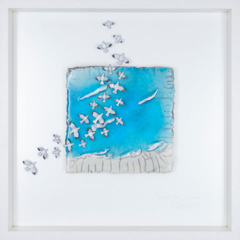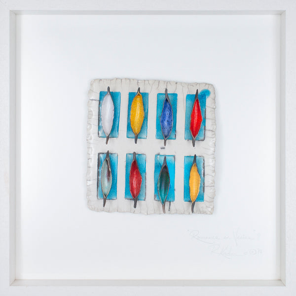 For anyone who has experienced the atmosphere of love and romance in beautiful Venice, with it's gondolas and sunshine, this piece should definitely evoke some nostalgic images and emotions! It has a little more of a contemporary feel than most of our other designs, but oozes romance, love and passion, with it's sun kissed metallic shimmers on the water. Please note, this piece is a little 'not square' so looks a little crooked in it's frame...hence the large reduction in price.