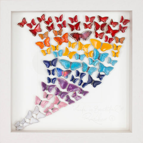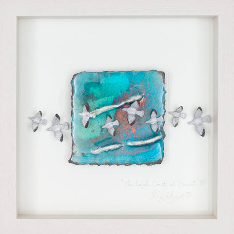 This piece depicts our stunning Irish landscape with its lush green rolling hills as well as some of our whimsical circular Martello towers which are dotted in abundance across our beautiful coastline.