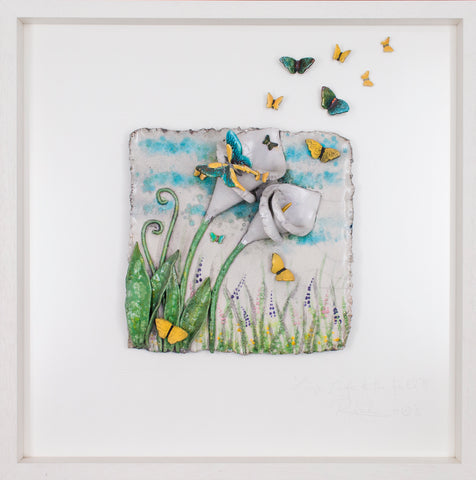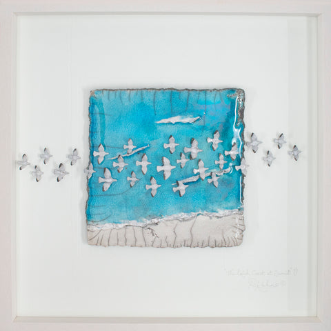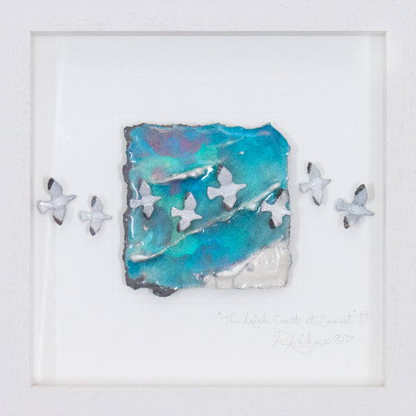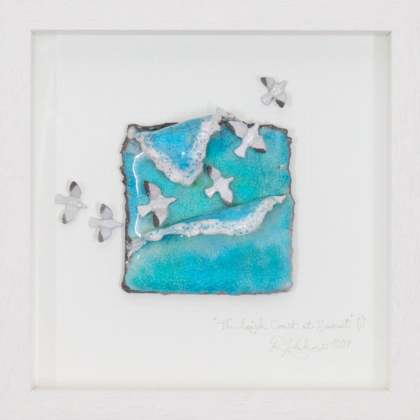 This piece depicts our stunning Irish landscape with its lush green rolling hills as well as some of our whimsical circular Martello towers which are dotted in abundance across our beautiful coastline.