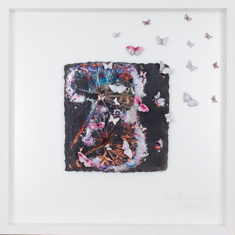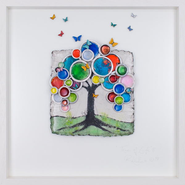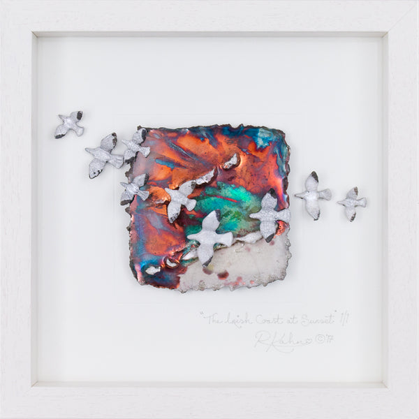 This piece has the most stunning array of multiple colours in it's oil slick metallics on a truly 'PURE' raku fired background! To me this is what raku is all about! Where the smoke penetrates the clay during the firing, to give these wonderful matt slate, greys and soft black finish! With all of it's colours this piece will very easily work with any colour scheme!