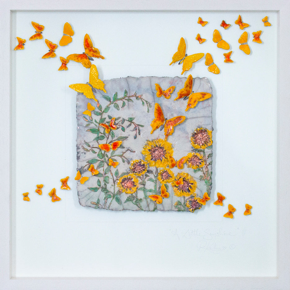This is a NEW design with gorgeous copper / bronze metallic centres on these happy yellow sunflowers which are a little 3D! Sure to lift your spirits even on the dullest of days and hopefully bring a smile to anyone's face!
