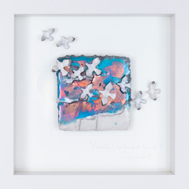 This piece portrays the stunning, rugged coastline of our beautiful Ireland! With calming turquoises and blues. May remind you of your favourite beach as a child...
