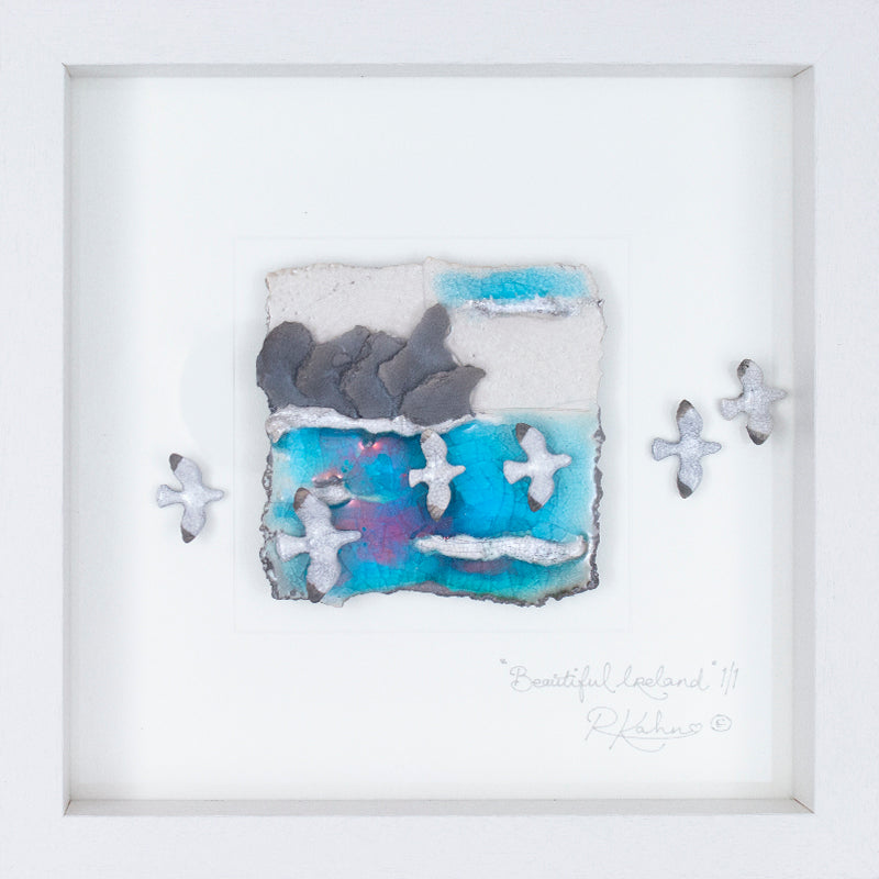 This piece depicts our stunning rugged Irish coastline with its crashing seas and wave carved cliffs that trim the fringes of our beautiful isle! There are beautiful flashes of metallics like the sunset kissing the water..