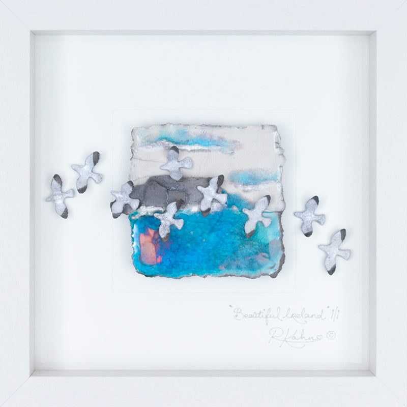 This piece depicts our stunning rugged Irish coastline with its crashing seas and wave carved cliffs that trim the fringes of our beautiful isle! There are beautiful flashes of metallics like the sunset kissing the water..