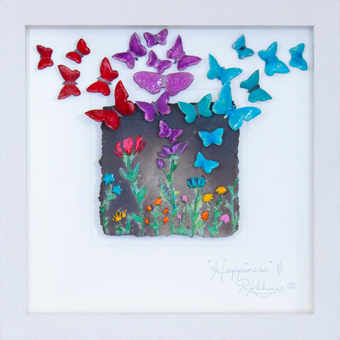 An explosion of vibrant, multicoloured butterflies, in a wild flower meadow...on my NEW design backdrop (much more 3D!!) giving a wonderful extra depth to the piece. A wonderful blast of colour for any room to certainly lift anyone's spirits....or... add 'a little Happiness' to one's day....