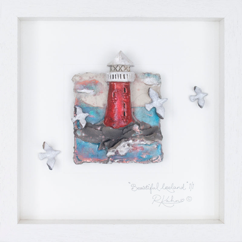 This piece depicts our stunning rugged Irish coastline with its crashing seas and one of its many quaint lighthouses that trim the fringes of our beautiful isle! The perfect interpretation of your favourite spot along the wild Atlantic way, the north, east or south coast....wherever your fond memories may be. Raku fired ceramic and glass framed wall art piece.