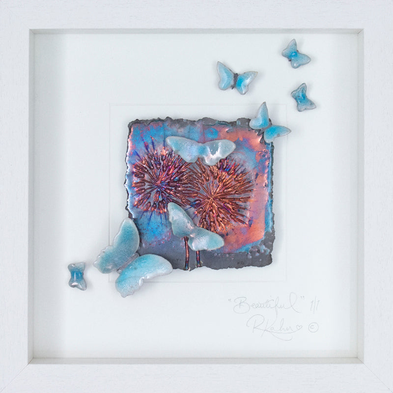 Stunning and dreamy soft and vibrant turquoise and blues, stunning oil slick metallics on a truly 'PURE' raku fired background! To me this is what raku is all about! Where the smoke penetrates the clay during the firing, to give these wonderful matt slate, greys and soft black finish! The rainbow of colours in the metallics will change throughout the day as the light changes...