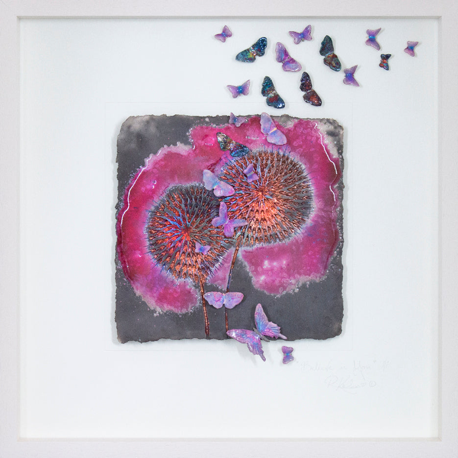 An explosion of vibrant, multicoloured butterflies, in a wild flower meadow...on my NEW design backdrop (much more 3D!!) giving a wonderful extra depth to the piece. A wonderful blast of colour for any room to certainly lift anyone's spirits....or... add 'a little Happiness' to one's day....
