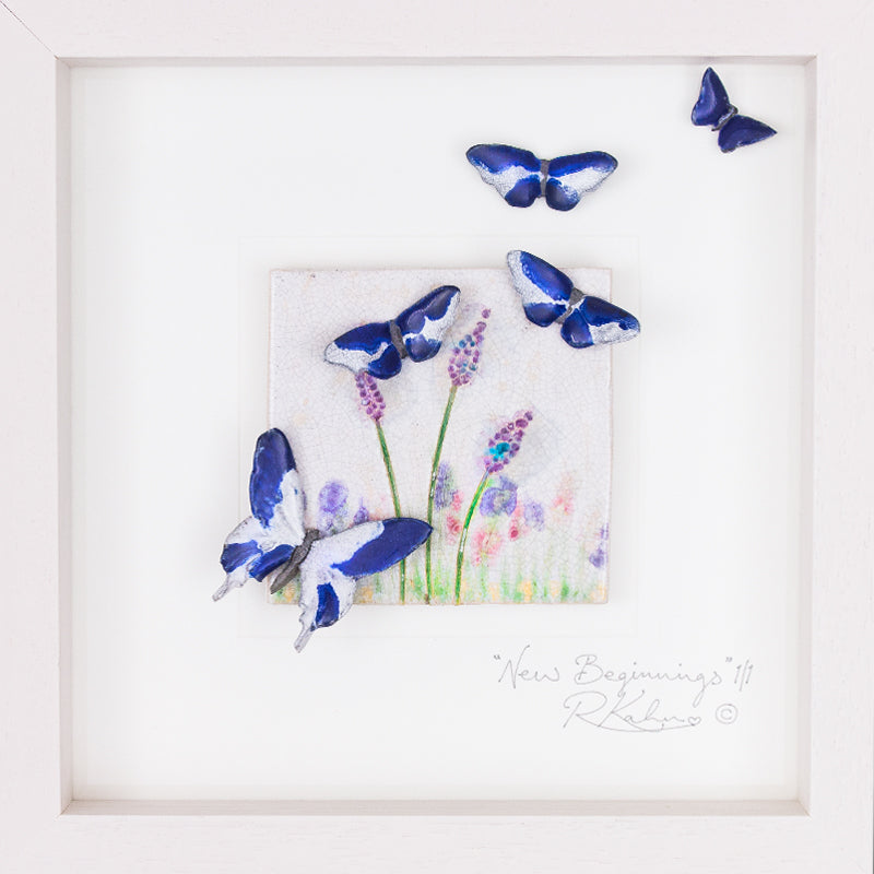 Mellow, calming, dreamy blues and touches of soft deep pink and lavender in this piece portraying a wonderful message 'New Beginnings'.