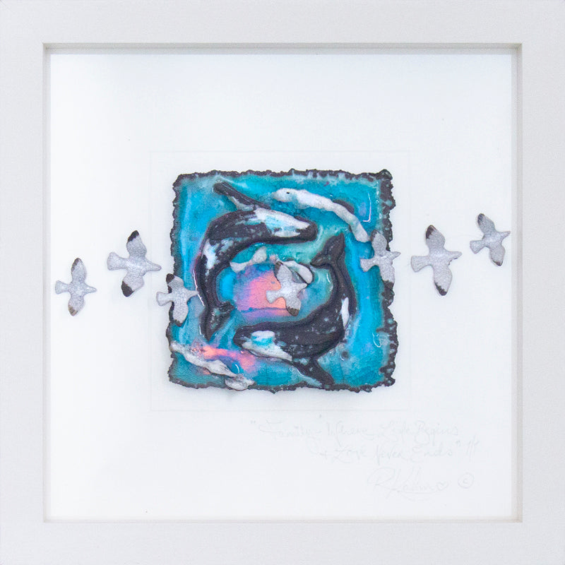 Stunning and dreamy soft and vibrant turquoise and blues, stunning oil slick metallics on a truly 'PURE' raku fired background! To me this is what raku is all about! Where the smoke penetrates the clay during the firing, to give these wonderful matt slate, greys and soft black finish! The rainbow of colours in the metallics will change throughout the day as the light changes...