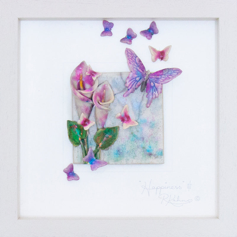 Dreamy backdrop with a light dusting of turquoise, showcasing this pure, crisp, antique white, lily piece with feminine, deep pinks ... This piece evokes nothing but ~ "Happiness"