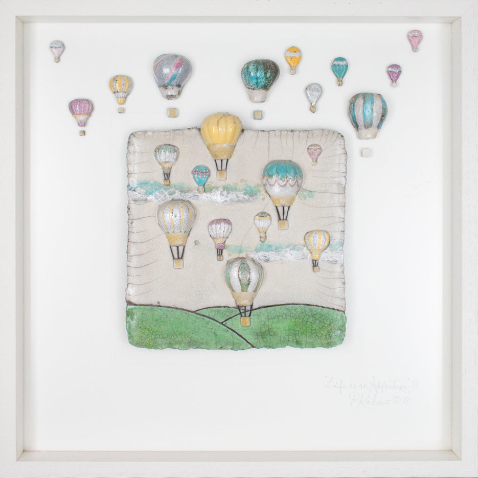 Whimsical hot air balloons, have such a sense of adventure, excitement and freedom! The perfect gift for so many occasions! This particular piece is glazed with lots of soft pastel colours...perfect for a child's room or nursery, or maybe just to suit your own colour scheme..