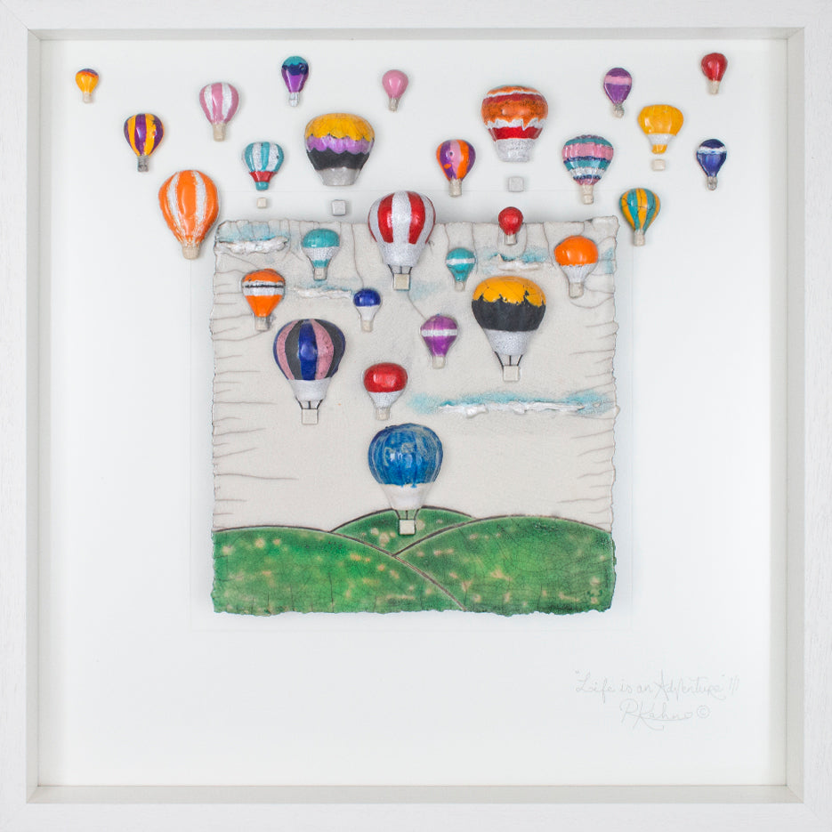 Whimsical hot air balloons, have such a sense of adventure, excitement and freedom! The perfect gift for so many occasions! This piece has lots of my NEW hot air balloons that are even 'more' 3D than before! Making the piece really come to life and gives such an amazingly uplifting feeling...