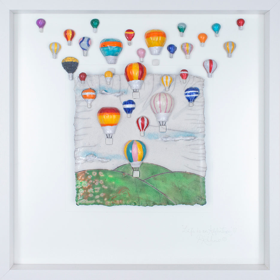 Whimsical hot air balloons, have such a sense of adventure, excitement and freedom! The perfect gift for so many occasions! This piece has lots of my NEW hot air balloons that are even 'more' 3D than before! Making the piece really come to life and gives such an amazingly uplifting feeling...