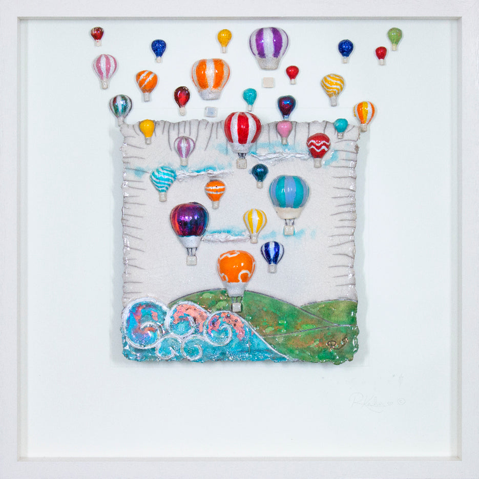 Whimsical hot air balloons, have such a sense of adventure, excitement and freedom! The perfect gift for so many occasions! This piece has lots of my NEW hot air balloons that are even 'more' 3D than before! Making the piece really come to life and gives such an amazingly uplifting feeling...