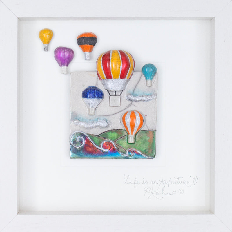 Whimsical hot air balloons, have such a sense of adventure, excitement and freedom! The perfect gift for so many occasions! This piece has lots of my NEW hot air balloons that are even 'more' 3D than before! Making the piece really come to life and gives such an amazingly uplifting feeling...