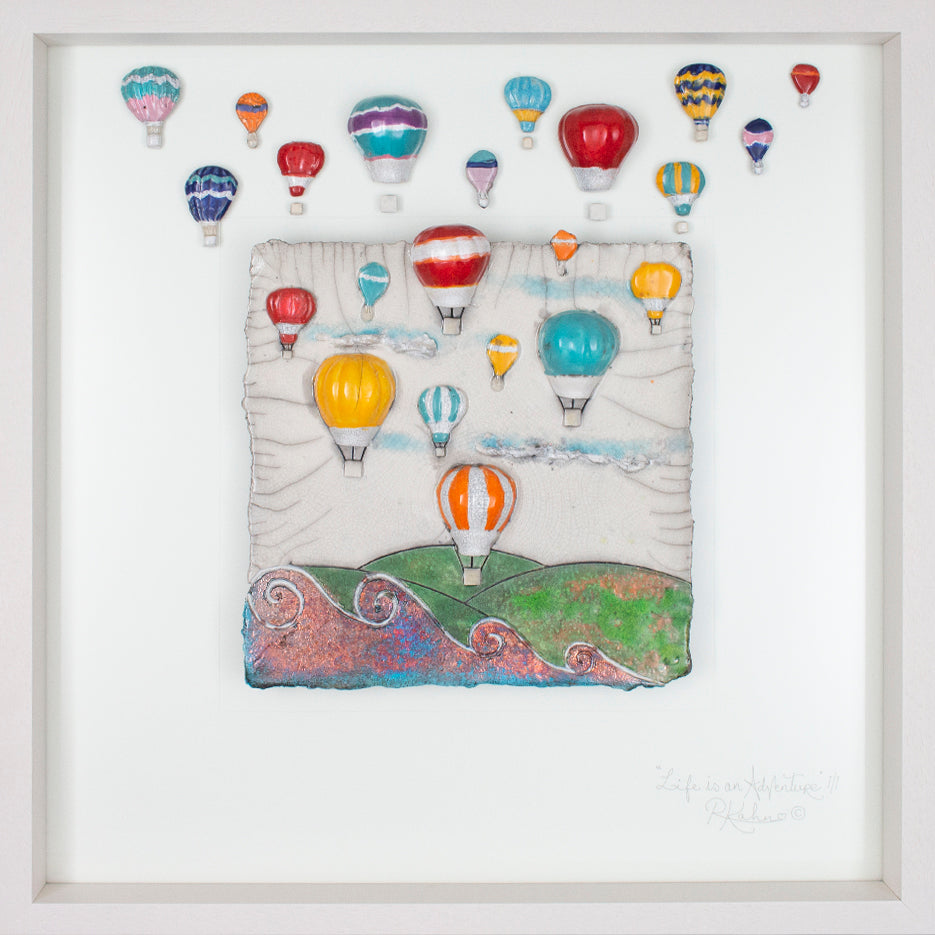Whimsical hot air balloons, have such a sense of adventure, excitement and freedom! The perfect gift for so many occasions! This particular piece is glazed with lots of soft pastel colours...perfect for a child's room or nursery, or maybe just to suit your own colour scheme..