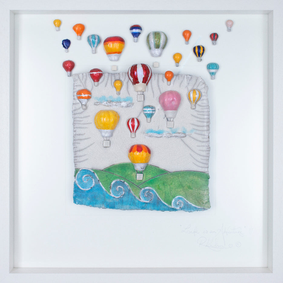Whimsical hot air balloons, have such a sense of adventure, excitement and freedom! The perfect gift for so many occasions! This piece has lots of my NEW hot air balloons that are even 'more' 3D than before! Making the piece really come to life and gives such an amazingly uplifting feeling...