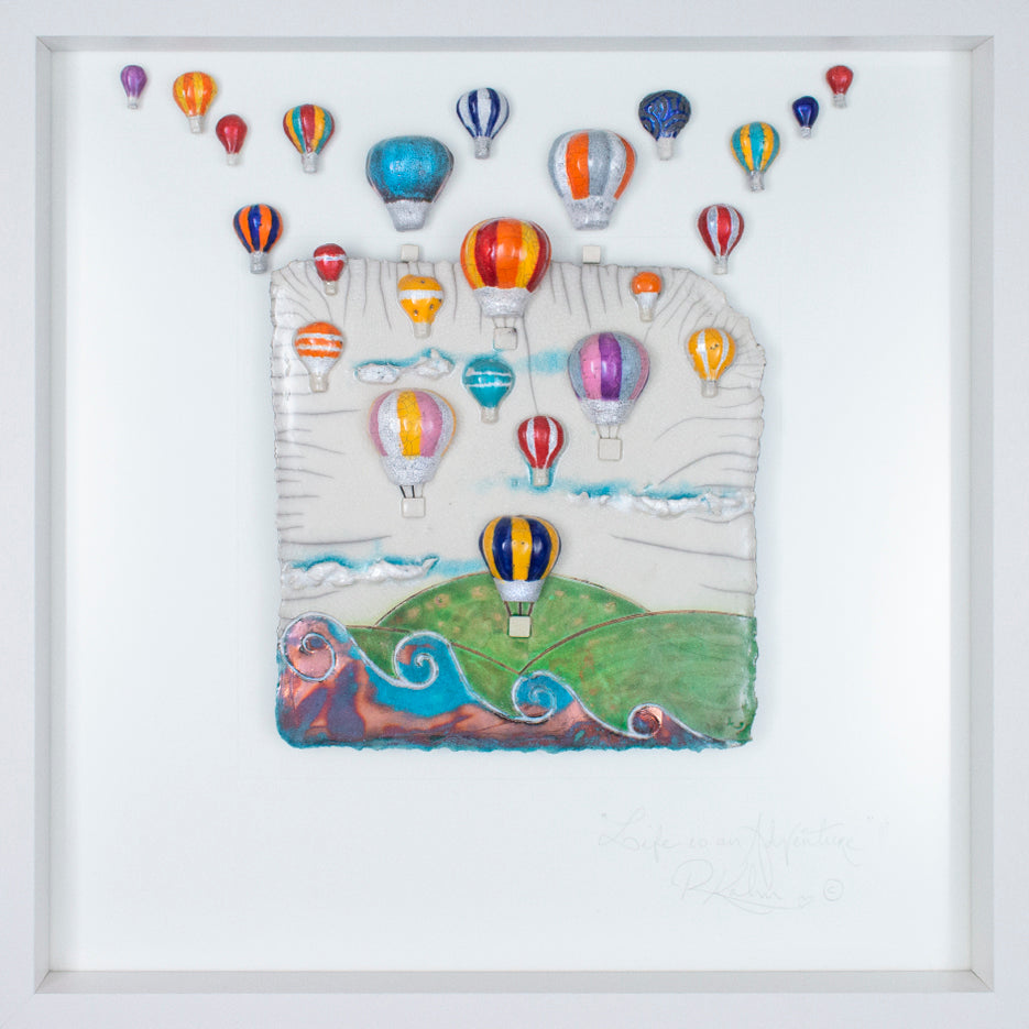 Whimsical hot air balloons, have such a sense of adventure, excitement and freedom! The perfect gift for so many occasions! This piece has lots of my NEW hot air balloons that are even 'more' 3D than before! Making the piece really come to life and gives such an amazingly uplifting feeling...