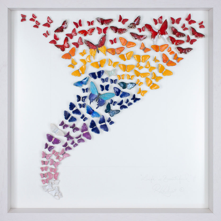 A mesmerising array of multicoloured butterflies blending from one colour to the next like a rainbow!