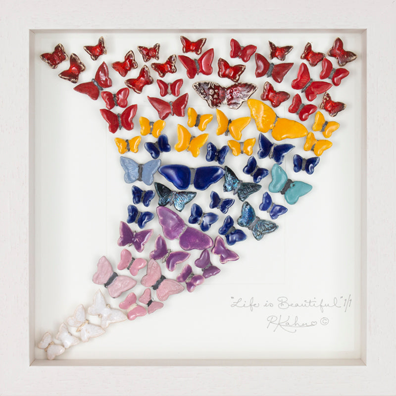 A mesmerising array of multicoloured butterflies blending from one colour to the next like a rainbow!