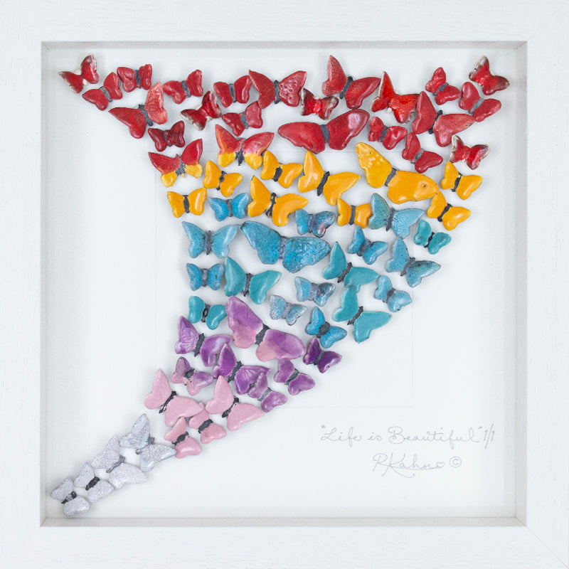 A mesmerising array of multicoloured butterflies blending from one colour to the next like a rainbow!