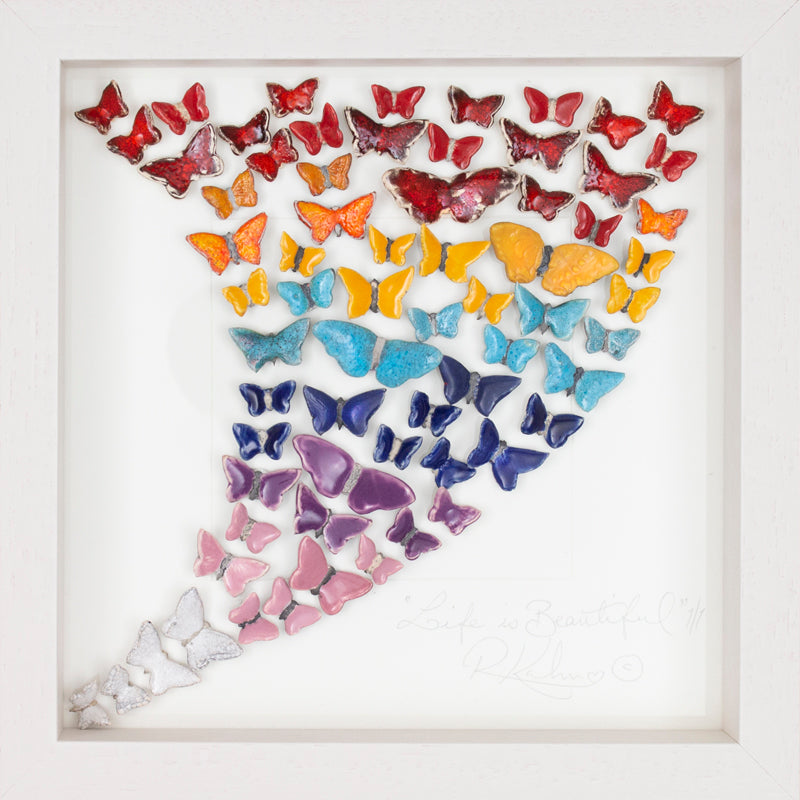 A mesmerising array of multicoloured butterflies blending from one colour to the next like a rainbow!