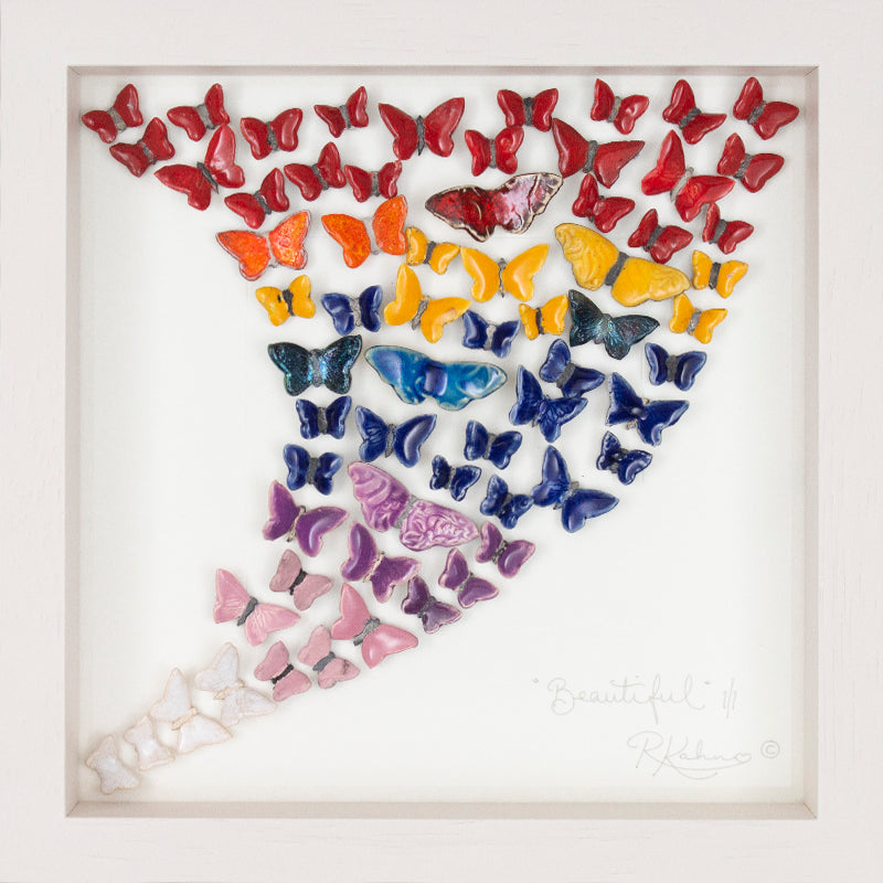 A mesmerising array of multicoloured butterflies blending from one colour to the next like a rainbow!