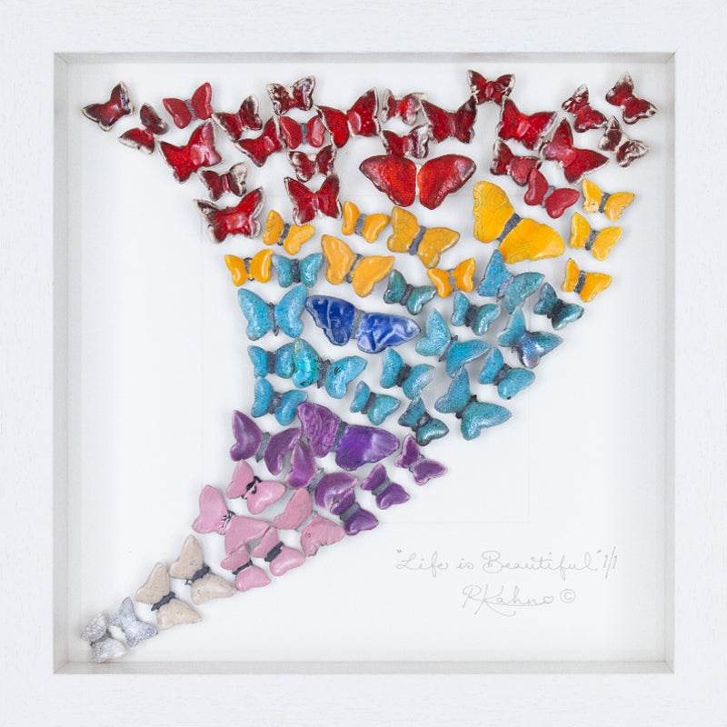 A mesmerising array of multicoloured butterflies blending from one colour to the next like a rainbow!