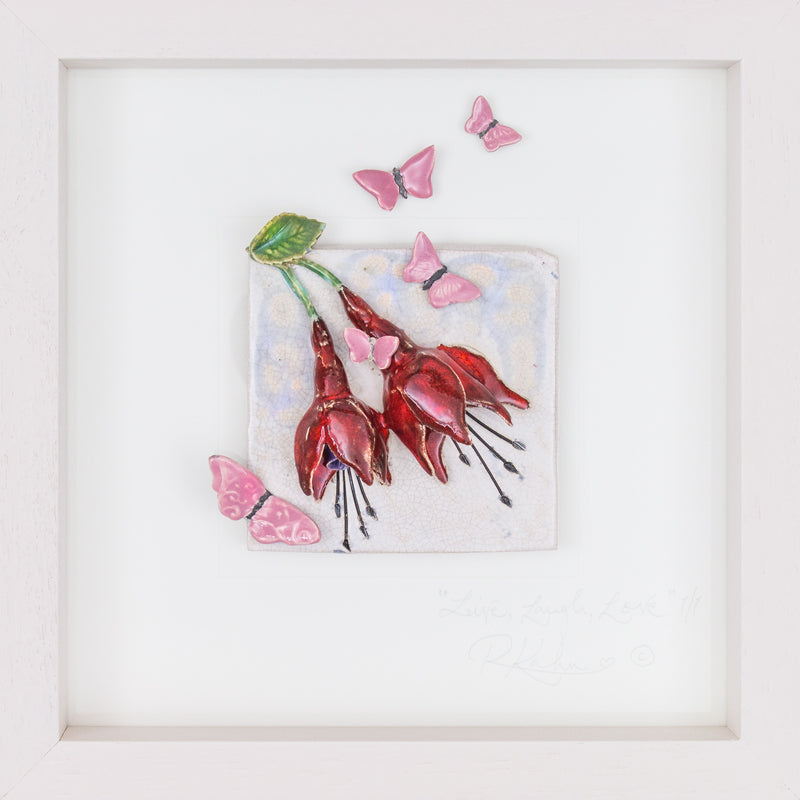 Stunning rich red fuchsias with delicate, feminine pink butterflies..