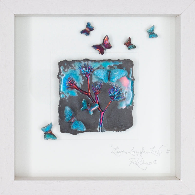 Stunning and dreamy soft and vibrant turquoise and blues, stunning oil slick metallics on a truly 'PURE' raku fired background! To me this is what raku is all about! Where the smoke penetrates the clay during the firing, to give these wonderful matt slate, greys and soft black finish! The colours in the metallics will change throughout the day as the light changes...