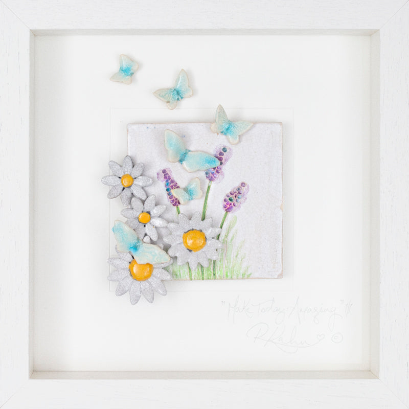 An explosion of vibrant, multicoloured butterflies, in a wild flower meadow...on my NEW design backdrop (much more 3D!!) giving a wonderful extra depth to the piece. A wonderful blast of colour for any room to certainly lift anyone's spirits....or... add 'a little Happiness' to one's day....
