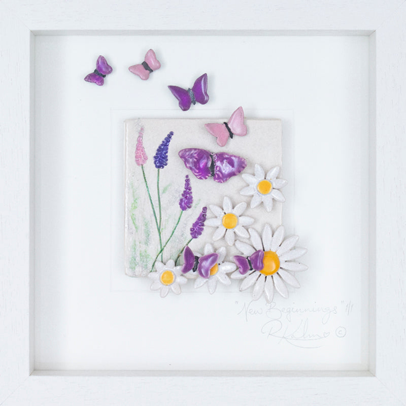 Feminine, purple and pink butterflies, in a wild flower meadow with pretty, fresh wild daisies... a wonderful dreamy piece...