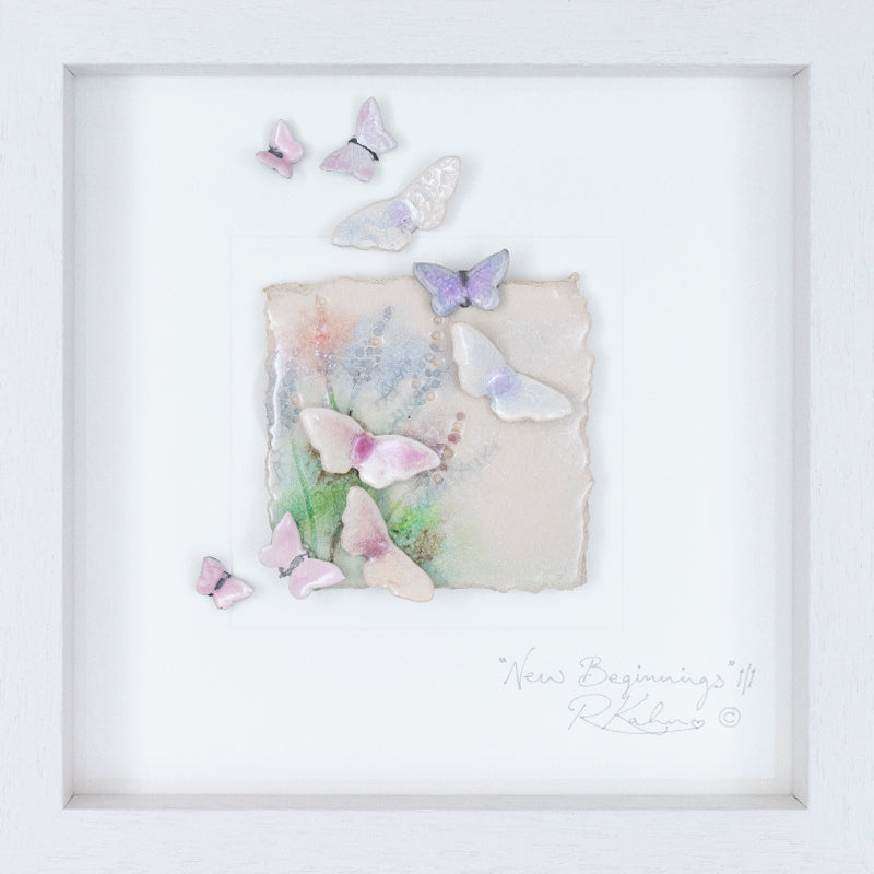Incredibly delicate and feminine, pretty soft lilac and pale pink butterflies, in a wild flower meadow... a wonderful dreamy piece...