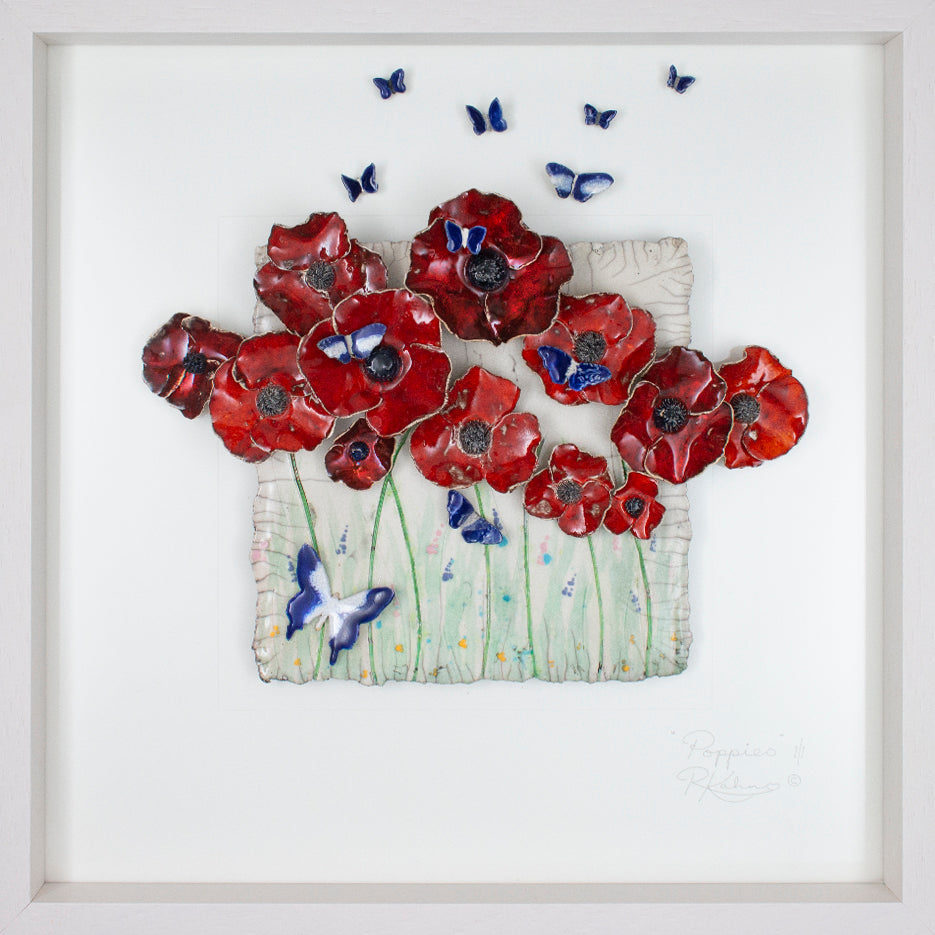 Vibrant deep red poppies! in a meadow of delicate, dreamy, wild flowers and butterflies.