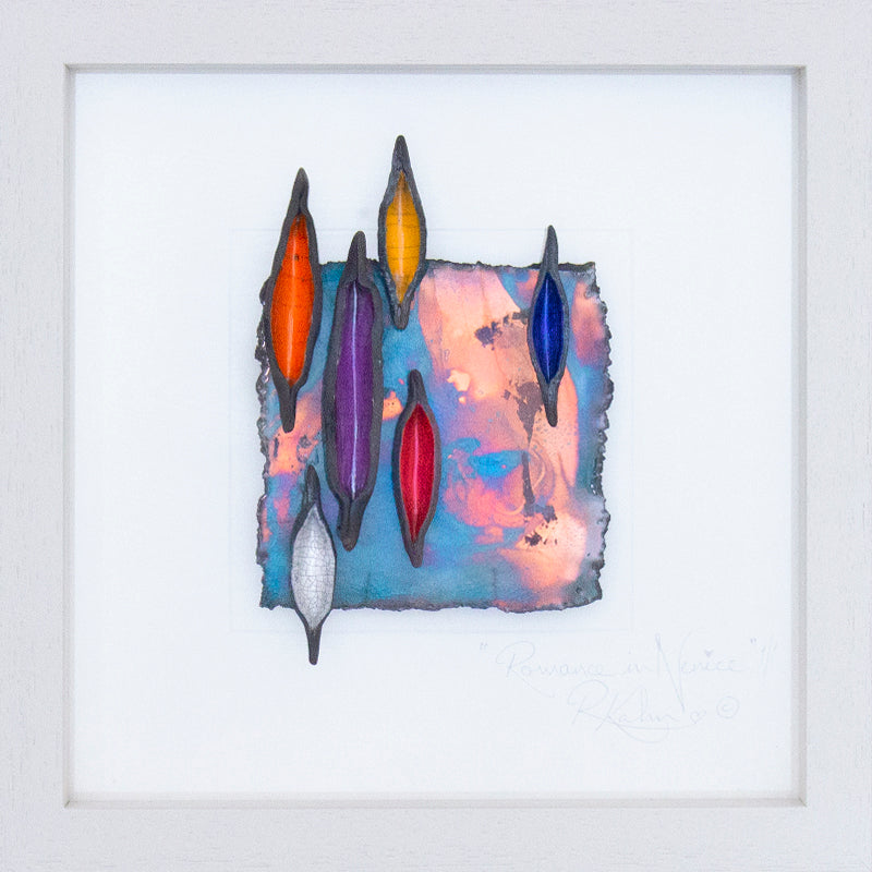 For anyone who has experienced the atmosphere of love and romance in beautiful Venice, with it's gondolas and sunshine, this piece should definitely evoke some nostalgic images and emotions! And even if you have not been, the romantic message can still be visualised and captured in your mind! It has a little more of a contemporary feel than most of my other designs, but oozes romance, love and passion, with it's sun kissed metallic shimmers on the water.