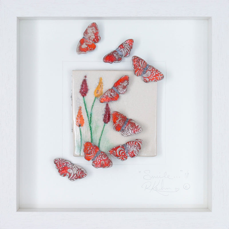 Vibrant, happy, warm sunset orange butterflies with a vintage feel, in a wild flower meadow... a wonderful blast of colour for any room..something to make you 'smile'...