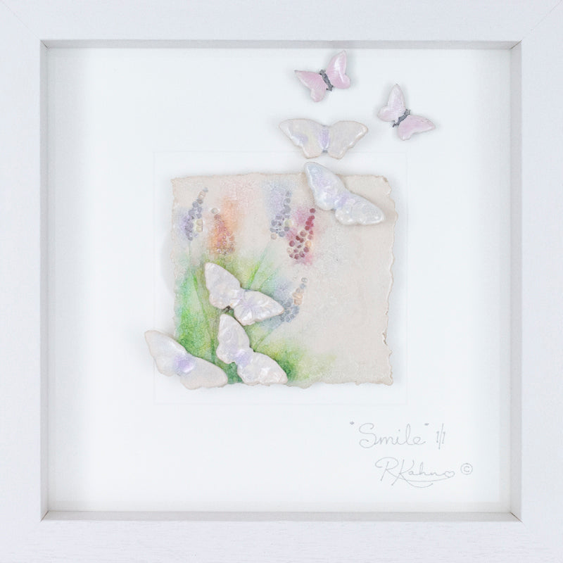 Incredibly delicate and feminine, pretty soft lilac and pale pink butterflies, in a wild flower meadow... a wonderful dreamy piece...