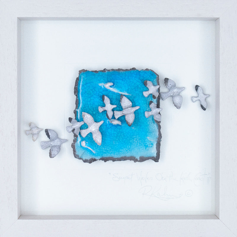 This piece portrays the stunning, rugged coastline of our beautiful Ireland! With calming turquoises and blues. May remind you of your favourite beach as a child...