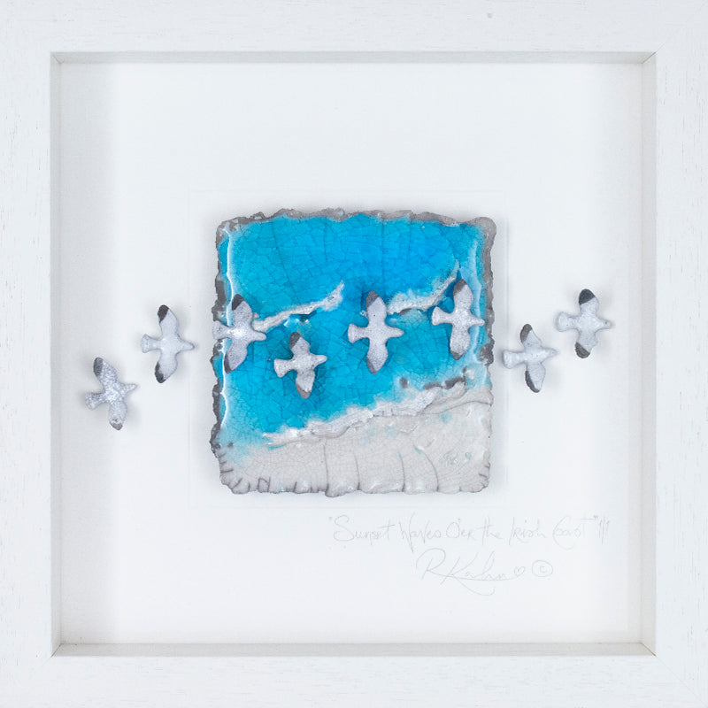 This piece portrays the stunning, rugged coastline of our beautiful Ireland! With calming turquoises and blues. May remind you of your favourite beach as a child...
