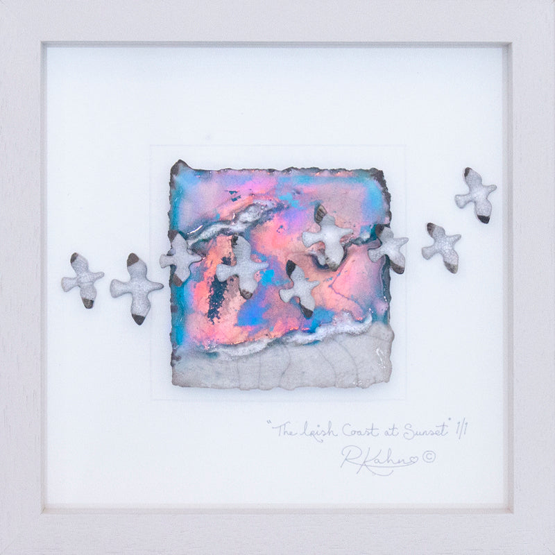 This piece portrays the stunning, rugged coastline of our beautiful Ireland! With calming turquoises and blues and little flecks of metallics where the sunset reflections kiss the waves.... May remind you of your favourite beach as a child...