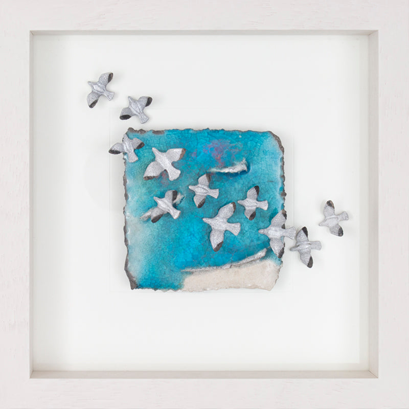 This piece portrays the stunning, rugged coastline of our beautiful Ireland! With turquoises, blues, greens and tiny hints of metallic reflections as the sunset kisses the water. Always reminds me of my favourite beach as a child.